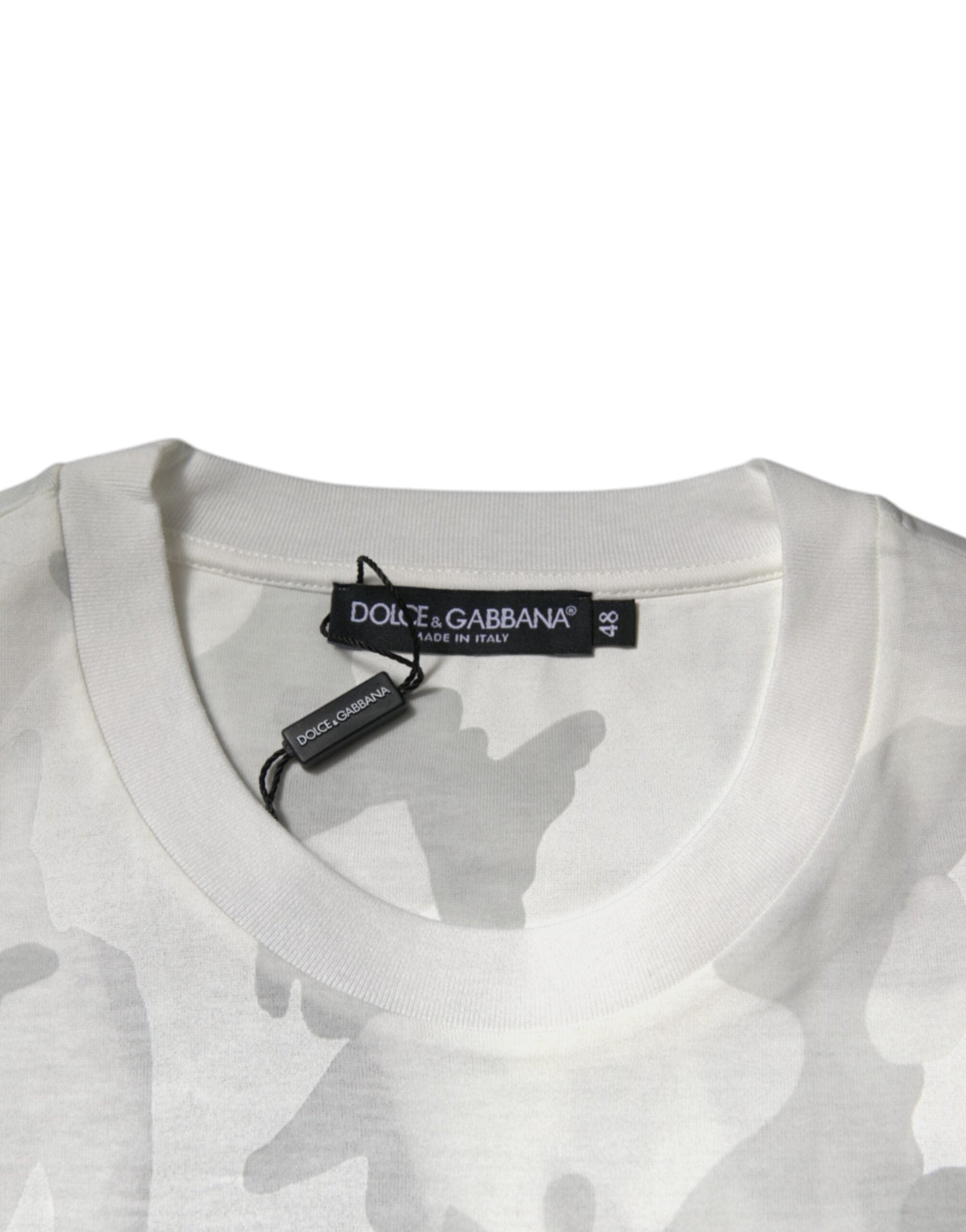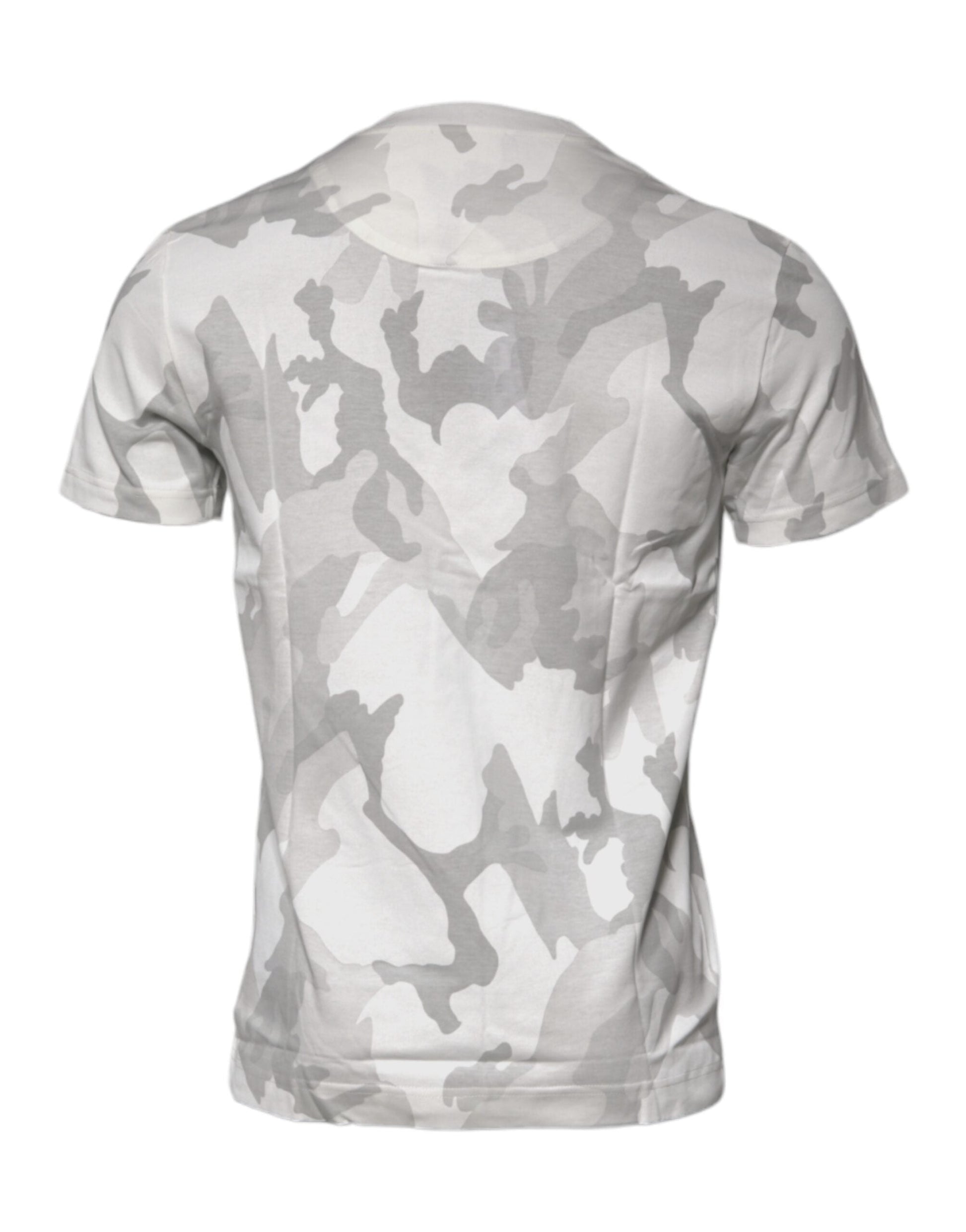 Dolce & Gabbana White Gray Camouflage Cotton Crew Neck T-shirt
