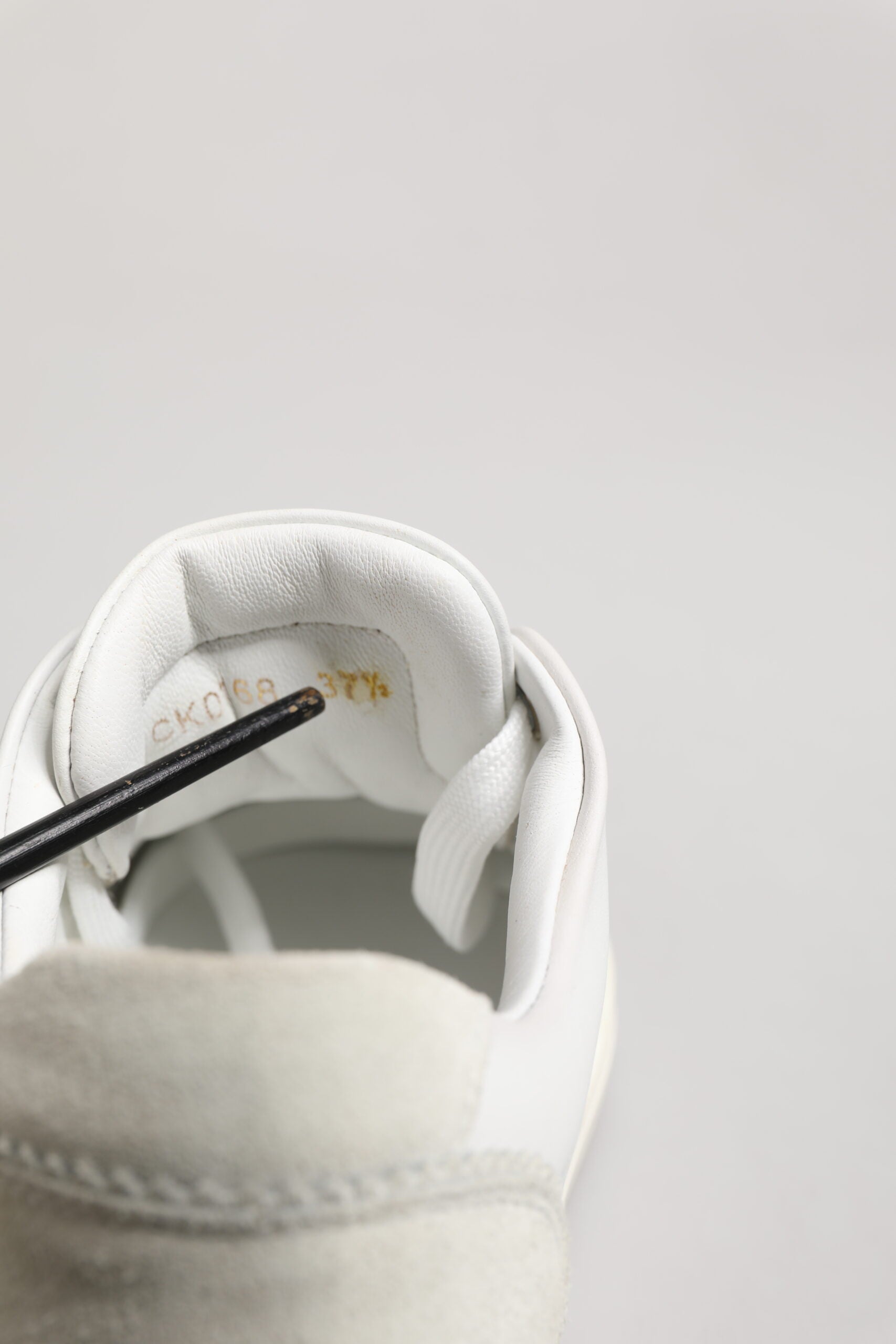 This item has a minor defect, there are stains on the inner lining of the right shoe (see pictures for details).