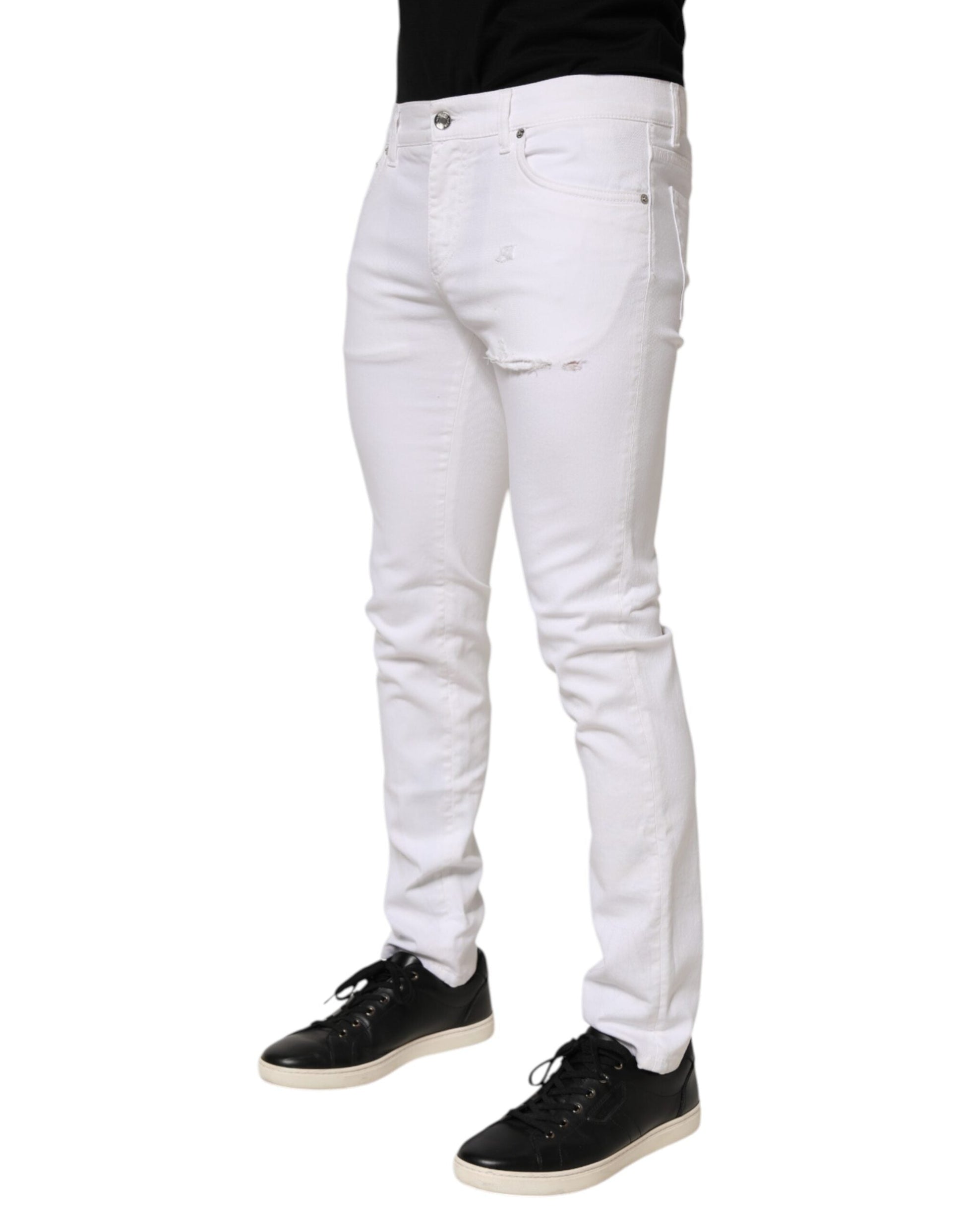 Dolce & Gabbana White Ripped Cotton Skinny Men Denim Jeans