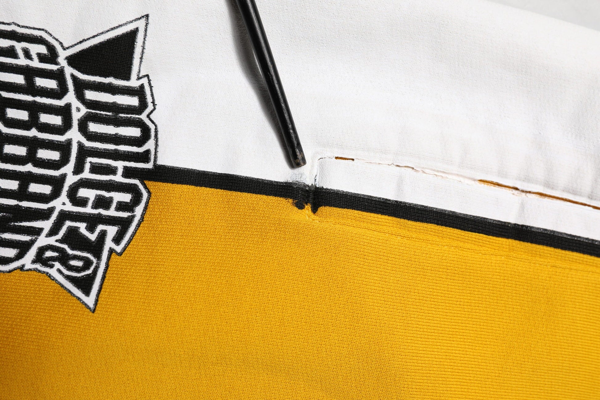 This item has a minor defect, there are print discolorations and holes on the front and back side (see pictures for details).
