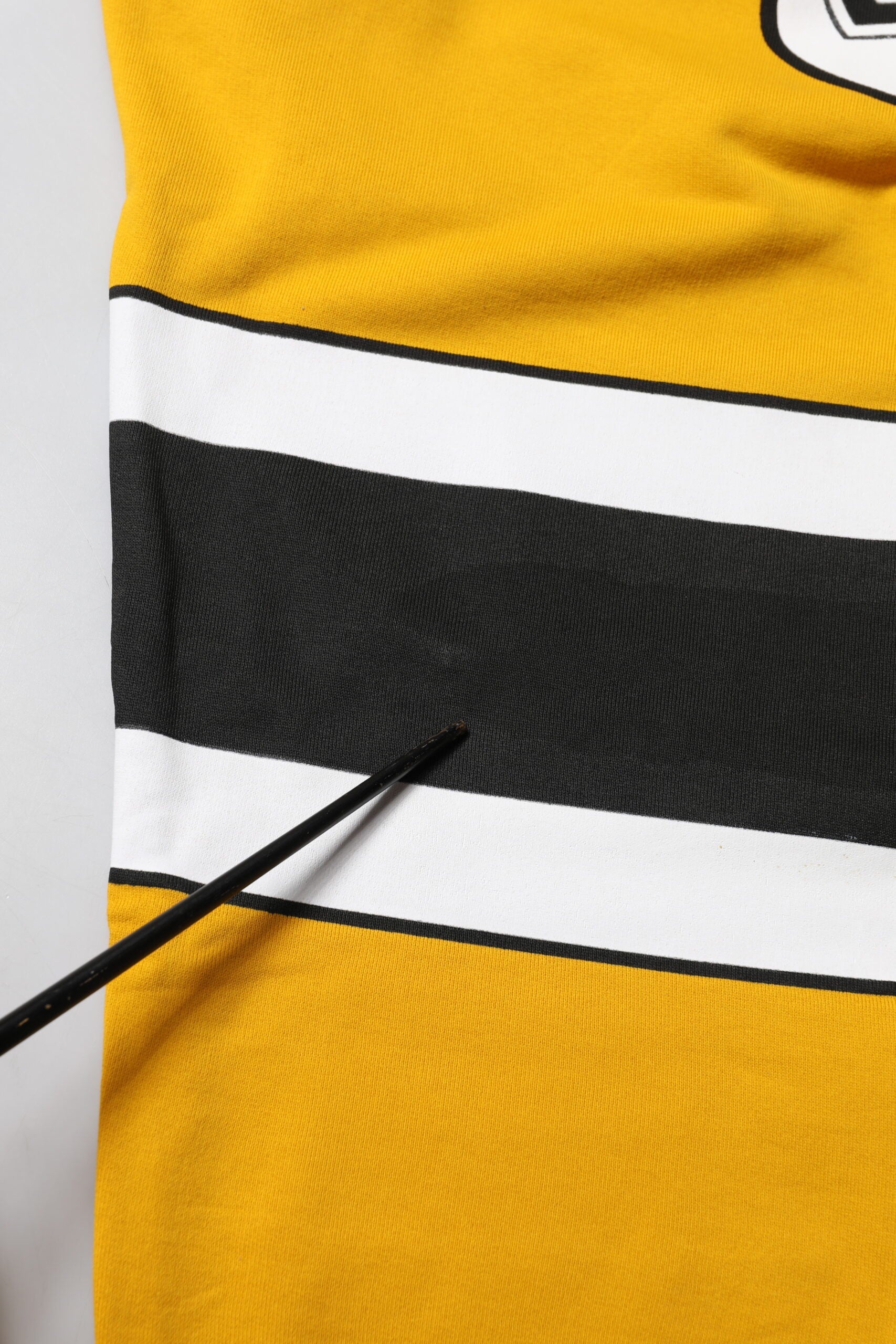 This item has a minor defect, there are print discolorations on the front and back side (see pictures for details).