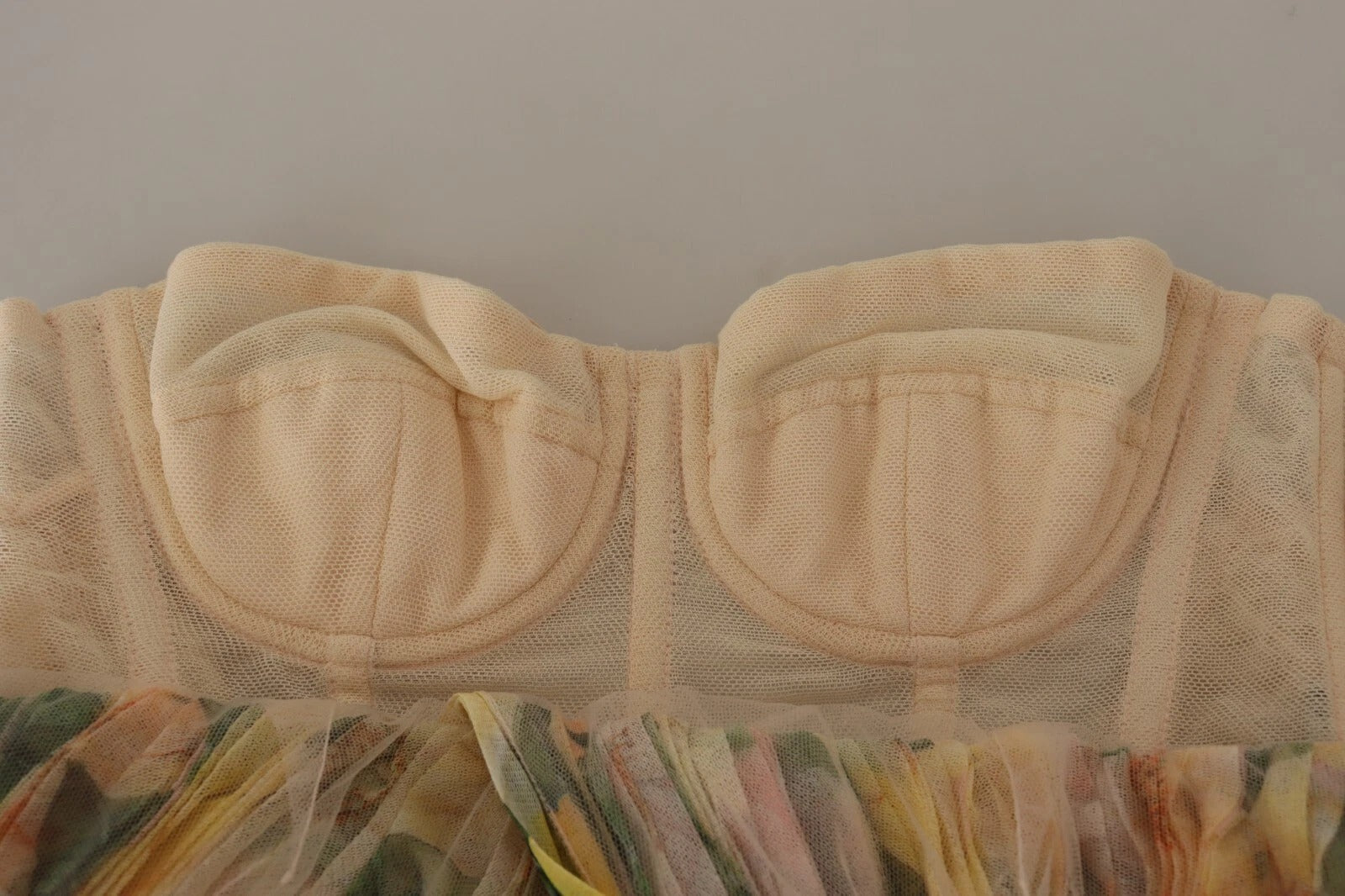Dolce & Gabbana Yellow Floral Print Pleated Maxi Dress